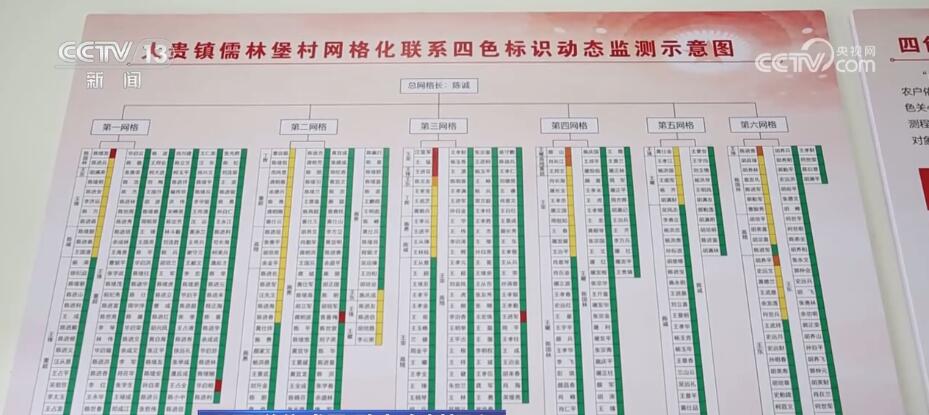 总台央视记者 施韶宇:我现在在平利县大贵镇儒林堡村的村委会办公室,大家看我旁边的这张图是村里的防返贫“四色”标识动态监测示意图。图上有红、橙、黄、绿四种颜色,红色是表示没有消除风险的监测户,橙色是表示已经消除了风险的监测户,黄色是表示过去的脱贫户,绿色是表示过去的一般农户。通过这个图,可以一目了然地了解村里村民的情况。