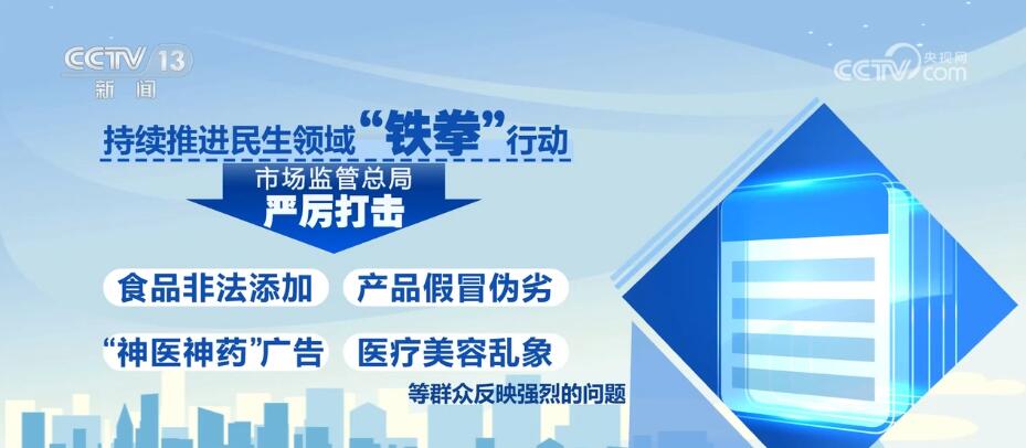 持续推进民生领域“铁拳”行动,市场监管总局严厉打击食品非法添加、产品假冒伪劣、“神医神药”广告、医疗美容乱象等群众反映强烈的问题。今年以来,已经查办民生领域案件35万余件。