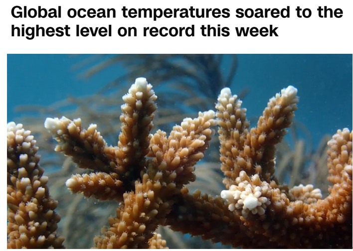当天除极地地区海域外,全球海洋表面平均温度达到20.96摄氏度,超过2016年录得的20.95摄氏度,成为自20世纪80年代哥白尼气候变化服务局开始监测相关数据以来的最高温纪录。