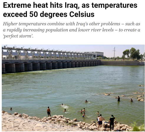 半岛电视台当地时间8月4日报道称,伊拉克近来频现极端高温天气,首都巴格达的气温一度达到49摄氏度,南部重镇巴士拉的最高气温甚至超过51摄氏度。