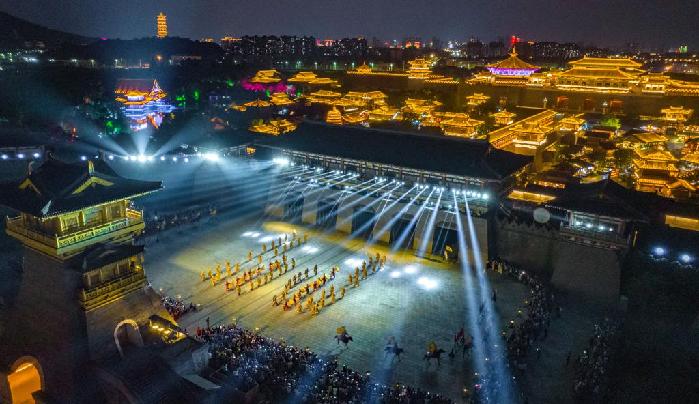 夜幕降临,湖北襄阳盛世唐城景区灯光闪烁、乐声怡人,游客沉浸式体验夜游项目《盛世唐城之大唐倚梦2》。沿着参观路线,游客可观赏不同的剧目表演,体验盛唐情景。近年来,国家历史文化名城襄阳注重发掘人文元素,激发文旅产业活力,推动当地从旅游过境地向旅游目的地转变。