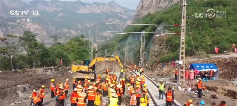 央视网消息:此前受暴雨影响,连接北京丰台和张家口沙城镇的丰沙铁路多处发生水害。经过铁路部门组织人员连续71个小时的奋战,该线路昨天(8月8日)恢复通行。