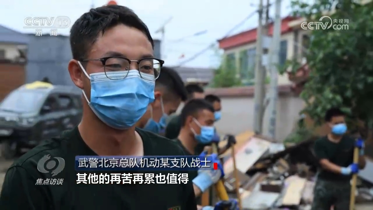 从7月31日接到命令以来,武警北京总队机动某支队就派出1450人奋战在一线,前期参与救援,现在是灾后清淤,每天都要工作十小时以上。