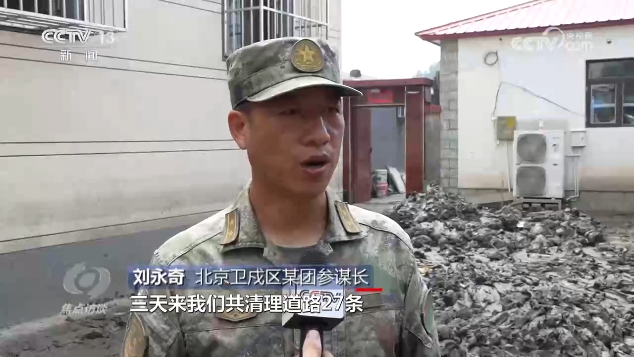 北京卫戍区某团参谋长刘永奇:“三天来,我们共清理道路27条,面积28000余平方米,淤泥700余立方米,废旧垃圾1300余立方米,全面疏通了各条道路。”