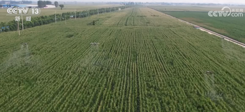 在河南新乡卫辉市,玉米田中的积水几天前已经排完,针对土壤湿度大、肥力流失的情况,植保无人机正在田间进行追肥。
