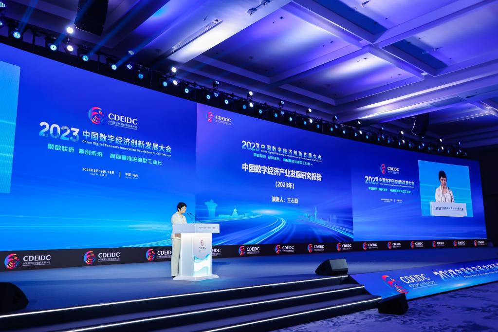 8月16日,广东汕头,中国信息通信研究院副院长王志勤发布《中国数字经济产业发展研究报告(2023年)》。(主办方供图)