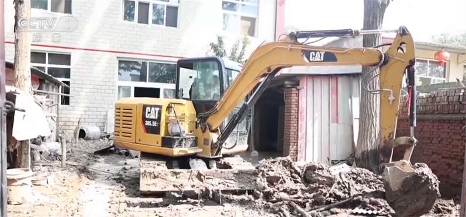 陈永泽随即又申请了10多辆大型机械,村委会也帮村民找到了几台能进院子的小型挖掘机,这下村民的院子里清理起来也快了许多,而为了加快清理的速度,邸家场村所在的东仙坡镇政府组织了已经完成清淤20多个村子的200多名党员干部,到邸家场村支援。