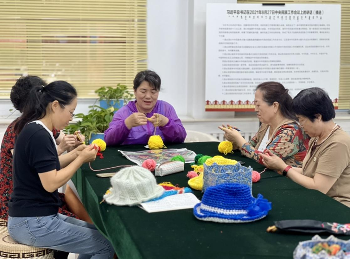 图为临潢家园社区居民开展编织活动。新华网 武文卓 摄
