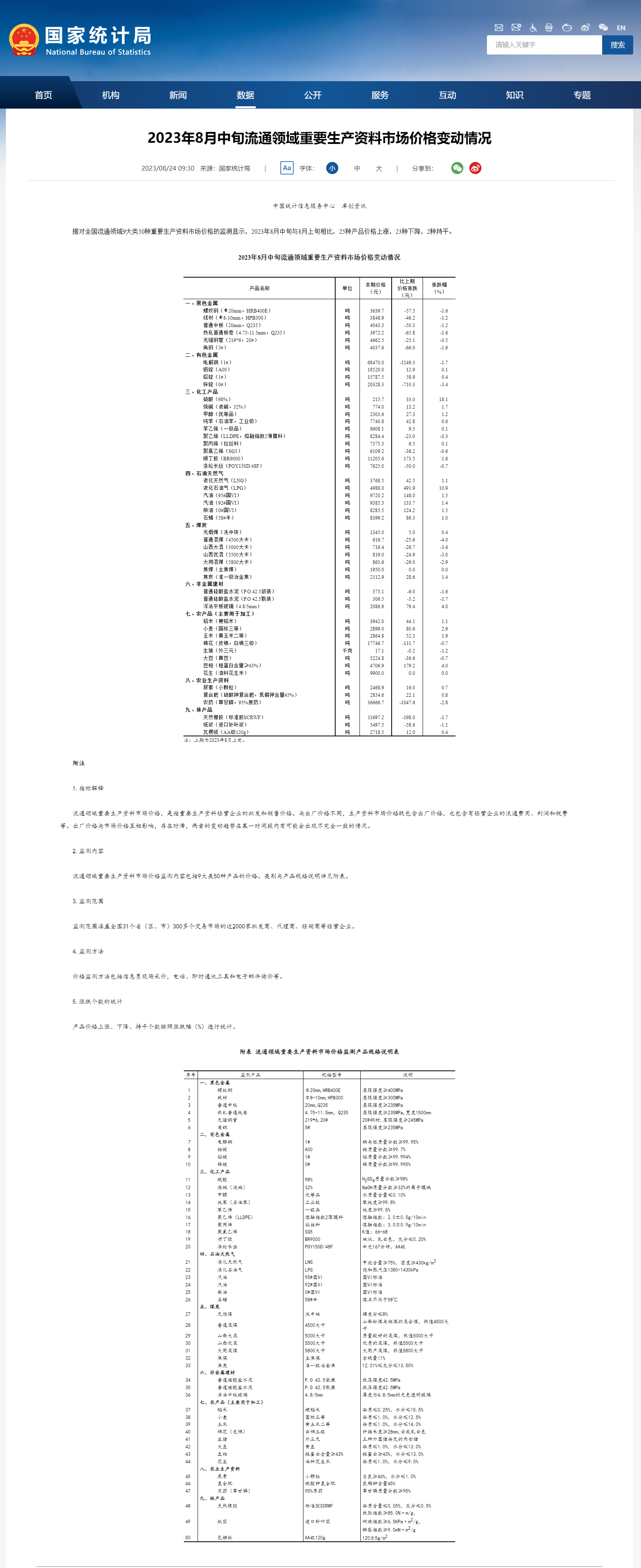 :国家统计局数据显示,2023年8月中旬与8月上旬相比,25种产品价格上涨,23种下降,2种持平。其中,生猪(外三元)价格报17.1元/千克,环比下降1.2%。