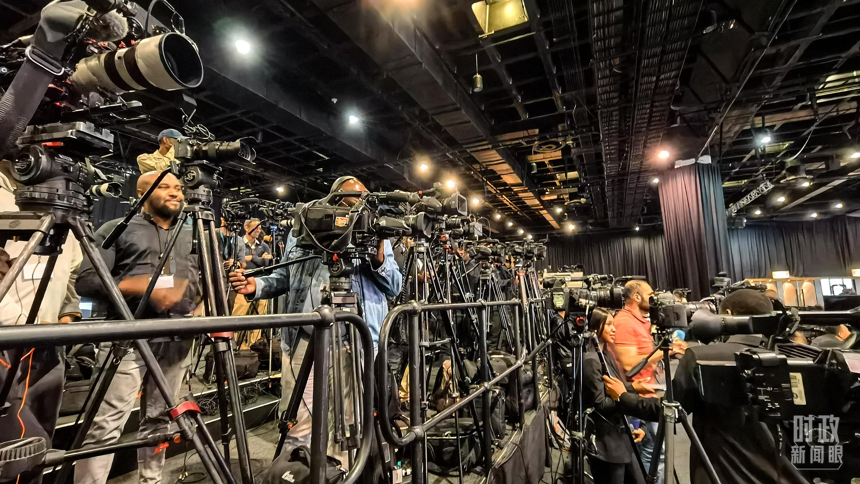 △特别记者会现场等候的各国记者。(总台央视记者韩锐拍摄)