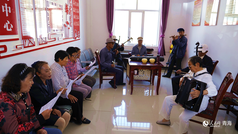 “咱们村子是个好地方,平展展儿的很宽敞;肥沃的土地上人们耕种忙……”夏末秋初,高原天朗气清,青海省海西蒙古族藏族自治州都兰县察汗乌苏镇民主街社区的活动室内,各民族老人们围坐一起,歌唱新生活,辅之以手风琴、笛子、二胡等乐器的和谐音色,悠扬声音飘荡街巷。