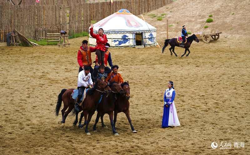 大型实景马术演艺剧印象茶卡之《草原英雄-成吉思汗》。人民网记者 杨启红摄