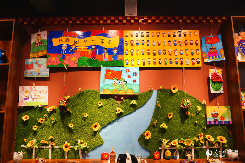 歇春园社区红石榴之家内,社区小朋友创作的民族团结主题作品引人驻足。人民网记者 杨启红摄