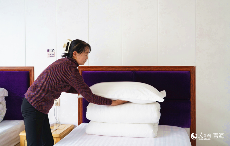巴音村的民宿内,主人正在整理床铺。人民网记者 杨启红摄