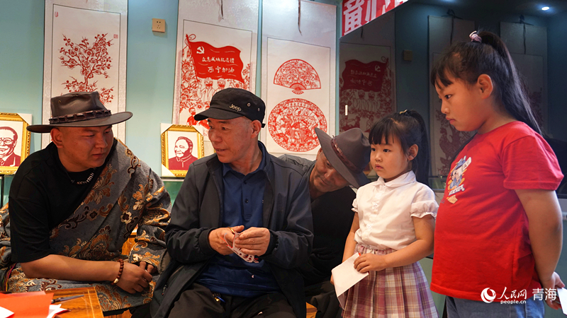 “红纸对折,再对折,先剪出大概轮廓,再剪蝴蝶的触角,剪刀要慢……”青海省海南藏族自治州贵德县河阴镇歇春园社区红石榴之家内,剪纸艺人杨成君正带领社区几名小孩学习剪纸,几位藏族居民也在旁边饶有兴趣地旁观。