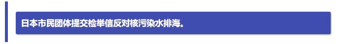 9月1日,日本市民团体“反对核电站核污染水排海全国联络会”向东京地方检察厅提交针对日本首相岸田文雄和东京电力公司总裁小早川的检举信,反对将福岛第一核电站核污染水排海。该市民团体指出,经过处理的核污染水中仍存在无法去除的放射性物质。国家采取的排海行为极为严重。