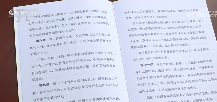 《条例》还明确劳动教育是家庭、学校、政府和社会的共同责任,应当构建家庭为基础、学校为主导、政府统筹推动、社会协同支持的劳动教育工作格局。在家庭责任方面,《条例》规定父母或其他监护人应当自觉履行对未成年人进行劳动教育的义务,保证未成年人每周家务劳动时间不少于两小时,鼓励家庭开展公益劳动、志愿服务和其他社会实践等。