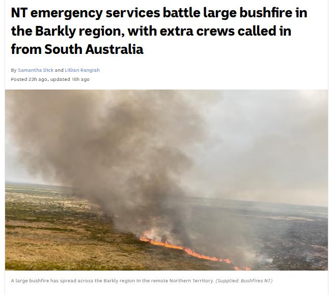 报道称,北领地应急部门正在调集消防人员和灭火飞机试图控制火势,并警告不要前往巴克利地区进行非必要的旅行。