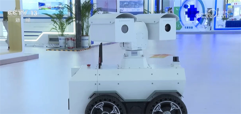 总台央视记者 古峻岭:我还发现了一个非常乖巧、灵活的机器狗,背上还驮着一个奇怪的装置,它是干什么的?我们来请教一下。