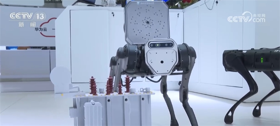参展商 张晨晨:这是我们研发的声纹机器狗,它广泛应用在电力、矿山、能源等领域,它可以代替人工前往高危地区,通过超声波发现机器出现故障时人耳听不到的异响,及时解决问题。