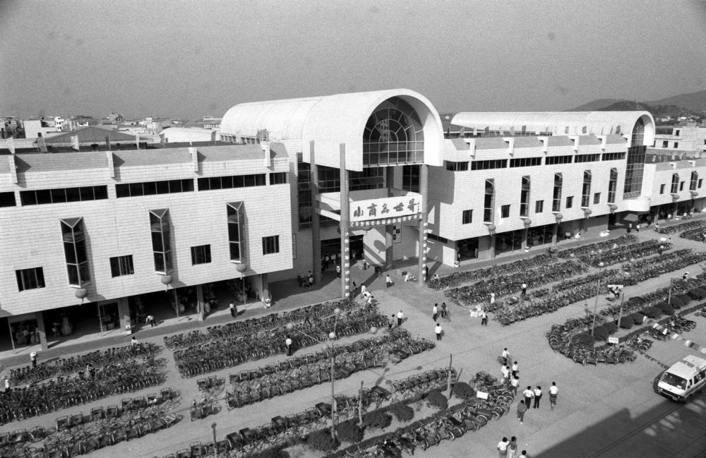 ↑ 1992年建成开业的义乌第四代小商品市场(资料照片)。