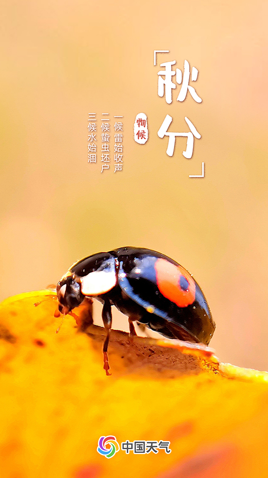 秋分有三候,一候雷始收声;二候蛰虫坯户;三候水始涸。秋分时节雷声逐渐终结,蛰居的小虫开始藏入穴中,河流和湖泊水量变少。
