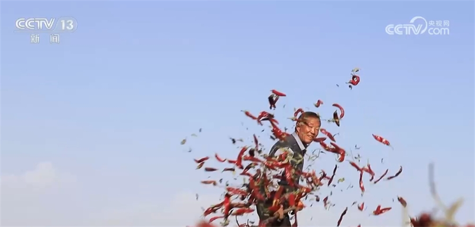 跟随镜头,我们来到了新疆巴州和硕县广袤的戈壁滩上。眼下,50多万亩红辣椒进入全面采收晾晒季,放眼望去,一片片“红色地毯”散发着热辣的气息。遍地的红辣椒被有序铺开,村民们穿梭其中,透着丰收的喜悦。当地农业部门测算,今年当地辣椒产量可达140万吨以上,辣椒采收及晾晒工作将持续至11月前后。