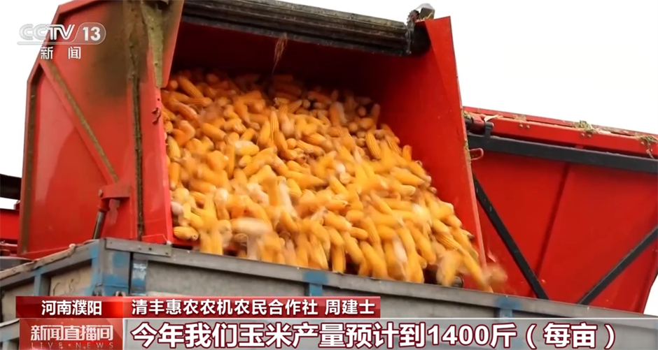 在河南省濮阳市,396万亩秋粮正在进行大规模收割。针对近期降雨偏多导致收获期缩短、秋粮湿度大等情况,濮阳市抢抓晴好天气,用现代化农业设备帮农户抢收玉米。