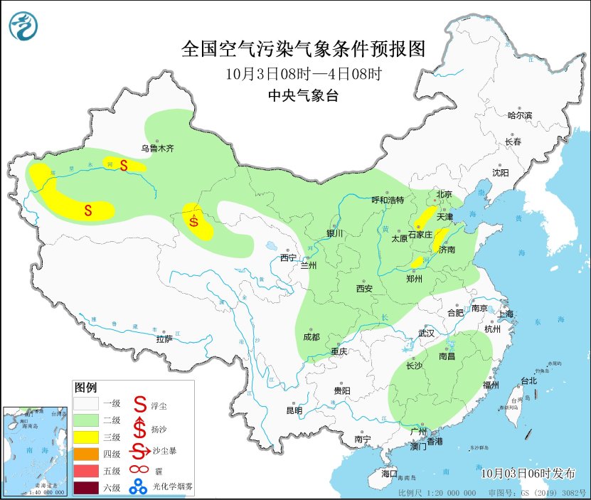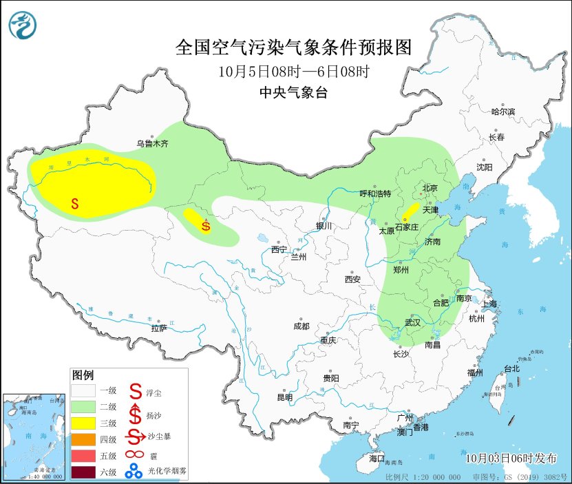 未来一周,新疆南部、甘肃西部、内蒙古西部等地有短时局地扬沙或浮尘天气。