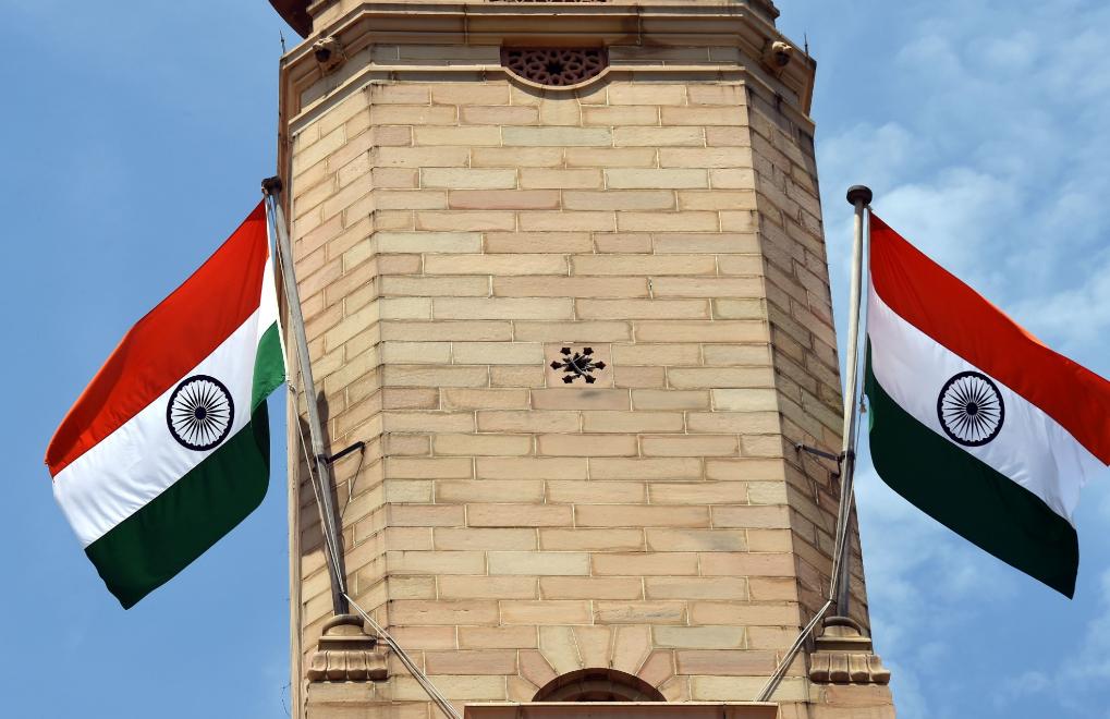 这是2019年8月8日在印度首都新德里拍摄的印度国旗。新华社记者张迺杰摄
