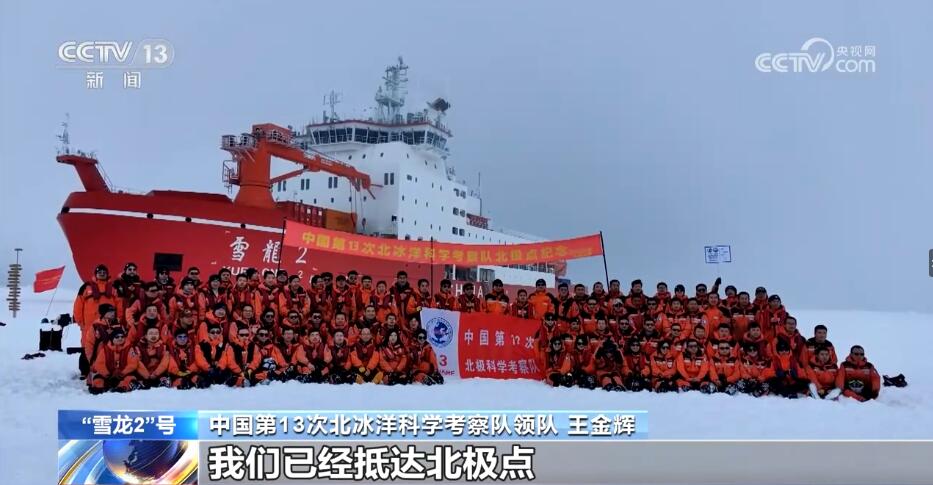 五分钟后,“雪龙2”号顺利抵达北极点。