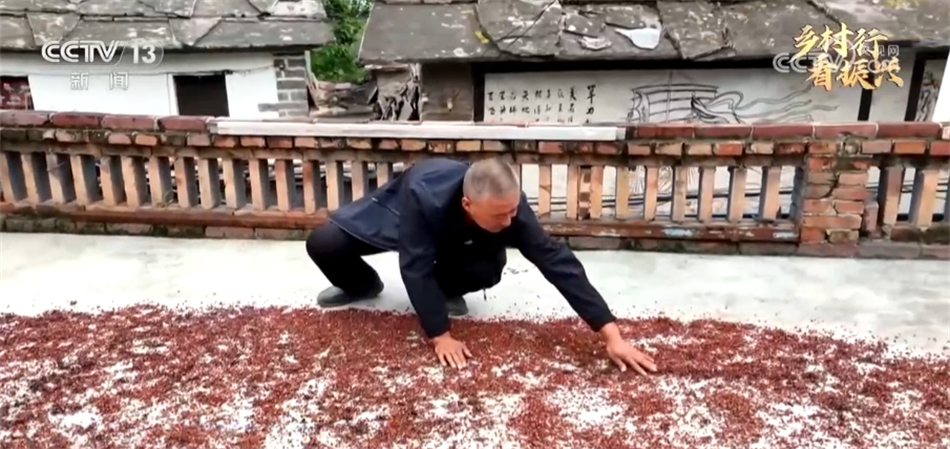 这段时间,趁着天气晴好,村民们抓紧把采收的花椒晾晒在屋顶。目前,虹霓村村民依靠乡村旅游和花椒种植,年人均增收近4000元。