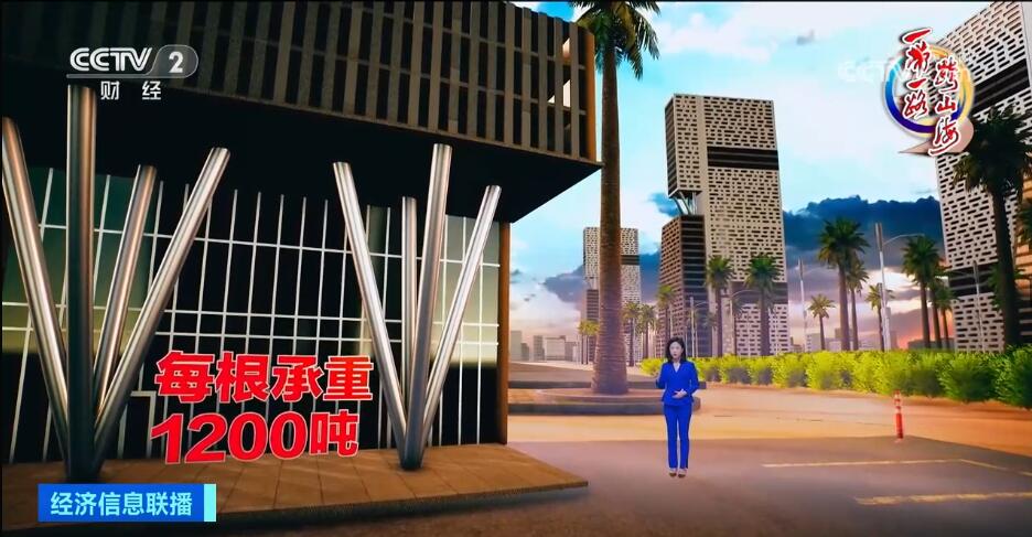 包括标志塔在内,中国企业在中央商务区共承接了20个高层建筑单体及配套市政工程。20栋高楼间,我们还能看见不少这样的“树形柱”,四根向上斜伸的柱子,像一个倒立的金字塔。我身边就是这种树形柱,每根柱子承受1200吨重量,相当于在上面站立150头成年大象,受力却只集中于底部一点,中国团队历经3个多月的精密计算与人工调试,让这个专属于埃及的设计成功浇筑,用坚实的技术托起了这座未来之城。