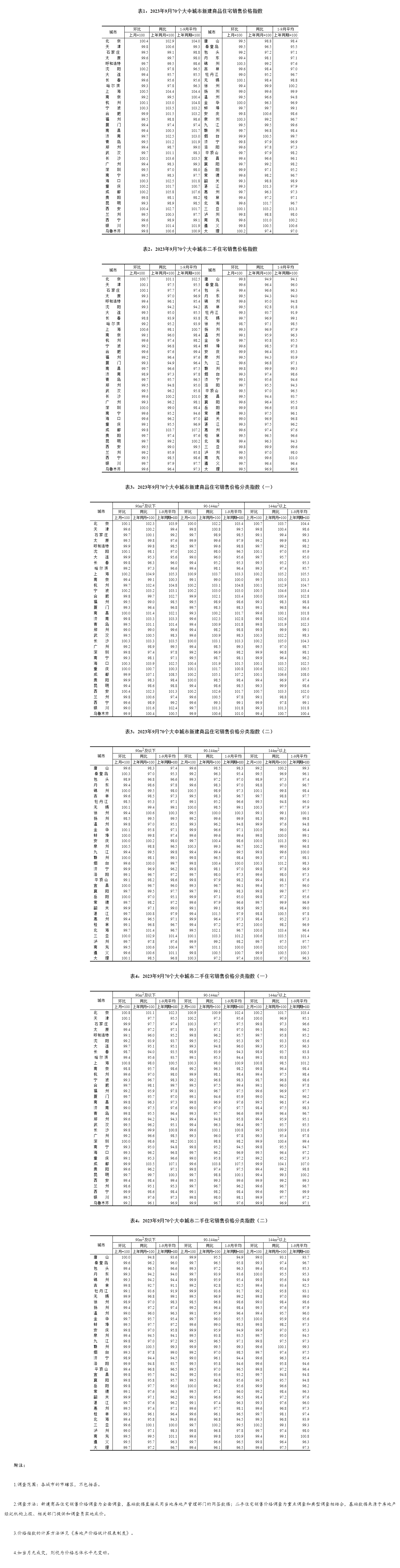 2023年9月份,一线城市新建商品住宅销售价格环比持平、同比涨幅扩大,二手住宅环比转涨、同比降幅收窄;二三线城市商品住宅销售价格环比下降、同比有涨有降。