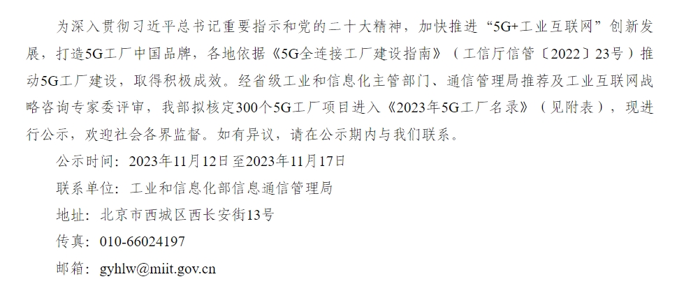 央视网消息:据工信部网站消息,经省级工业和信息化主管部门、通信管理局推荐及工业互联网战略咨询专家委评审,工信部拟核定300个5G工厂项目进入《2023年5G工厂名录》(见附表),现进行公示。