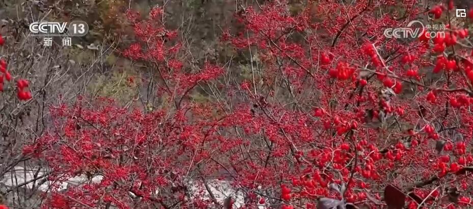 山林间,成片的山茱萸树在褪去枯叶后,红彤彤的果实便显露出来,密密麻麻缀满枝头。种植户们穿梭林间,忙着采摘。