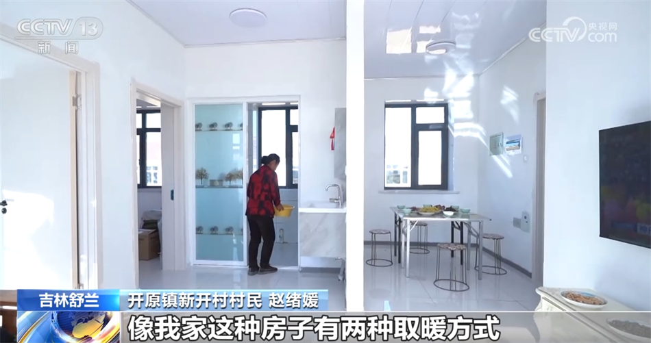 吉林省舒兰市开原镇新开村村民 赵绪媛:政府设计房子的时候就问了我们的意见,像我家的房子有两种取暖方式,一种是烧火做饭,炕就热乎了,另一种是电取暖,直接带动地热,用的是峰谷电价,价格也合理。