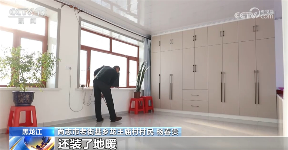 黑龙江省尚志市老街基乡龙王庙村村民 杨春贵:你看这炕都是重新砌的,还装了地暖,这屋子现在一烧老热乎了。