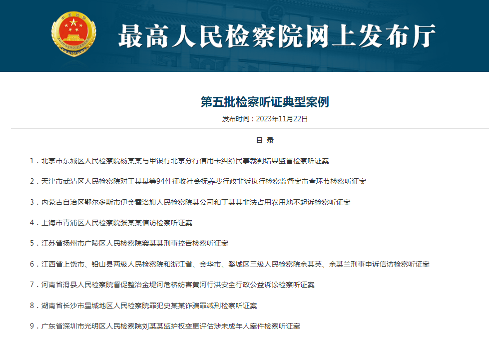 记者11月22日从最高人民检察院获悉,最高检近日印发了第五批检察听证典型案例。