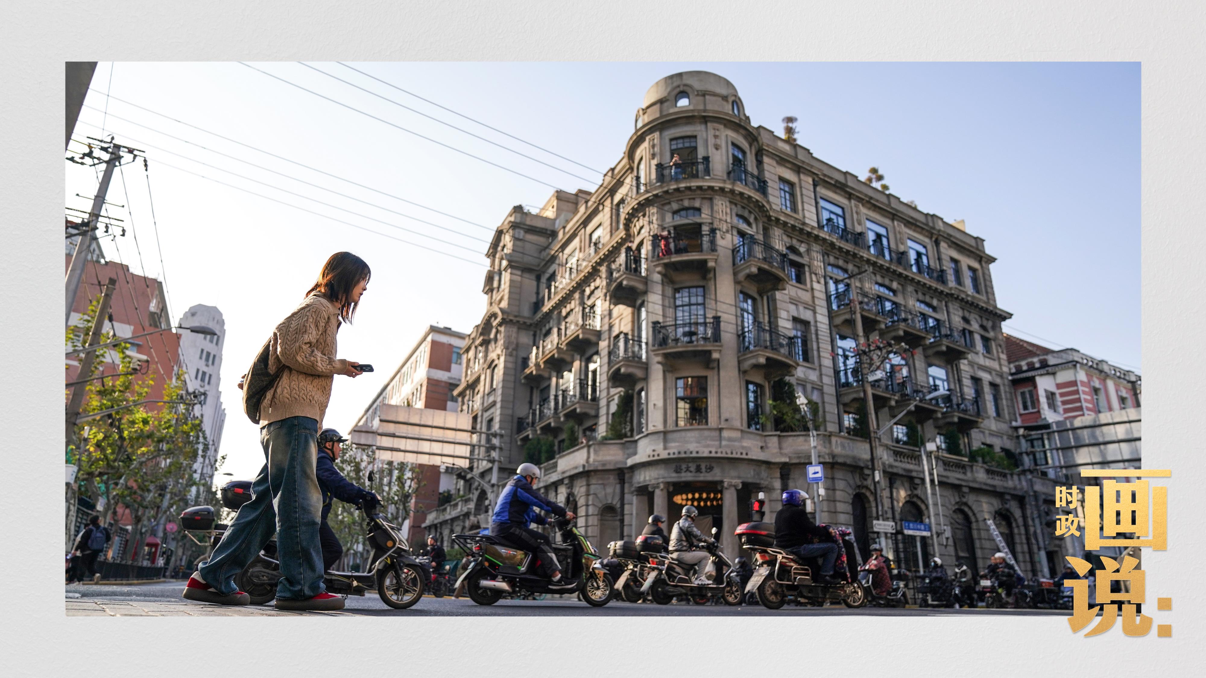 △百年历史的沙美大楼前车水马龙。黄浦区,上海。