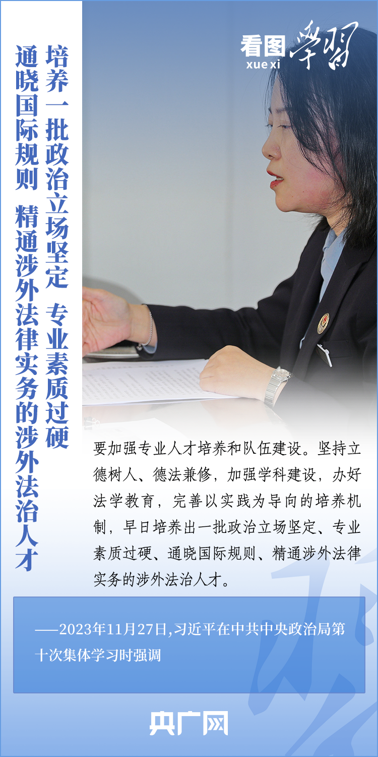 涉外法治作为中国特色社会主义法治体系的重要组成部分,事关全面依法治国,事关我国对外开放和外交工作大局。11月27日,中共中央政治局就加强涉外法制建设进行第十次集体学习。习近平总书记在主持学习时强调,加强涉外法治建设既是以中国式现代化全面推进强国建设、民族复兴伟业的长远所需,也是推进高水平对外开放、应对外部风险挑战的当务之急。一起来学习!