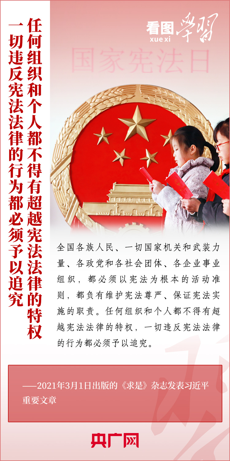 宪法是国家的根本法,是党和人民意志的集中体现。尊崇宪法、学习宪法、遵守宪法、维护宪法、运用宪法,是每个公民的义务。在第十个国家宪法日(12月4日)来临之际,《看图学习》栏目为您梳理习近平总书记关于宪法的重要论述。一起来学习!