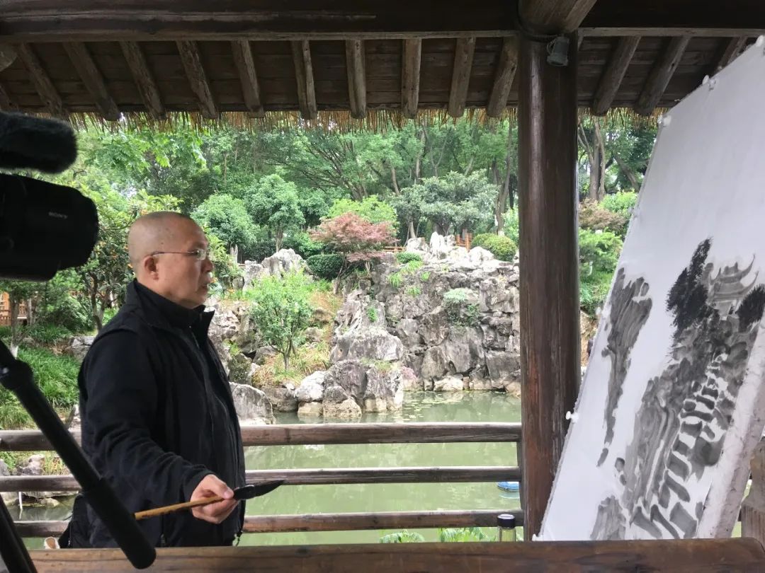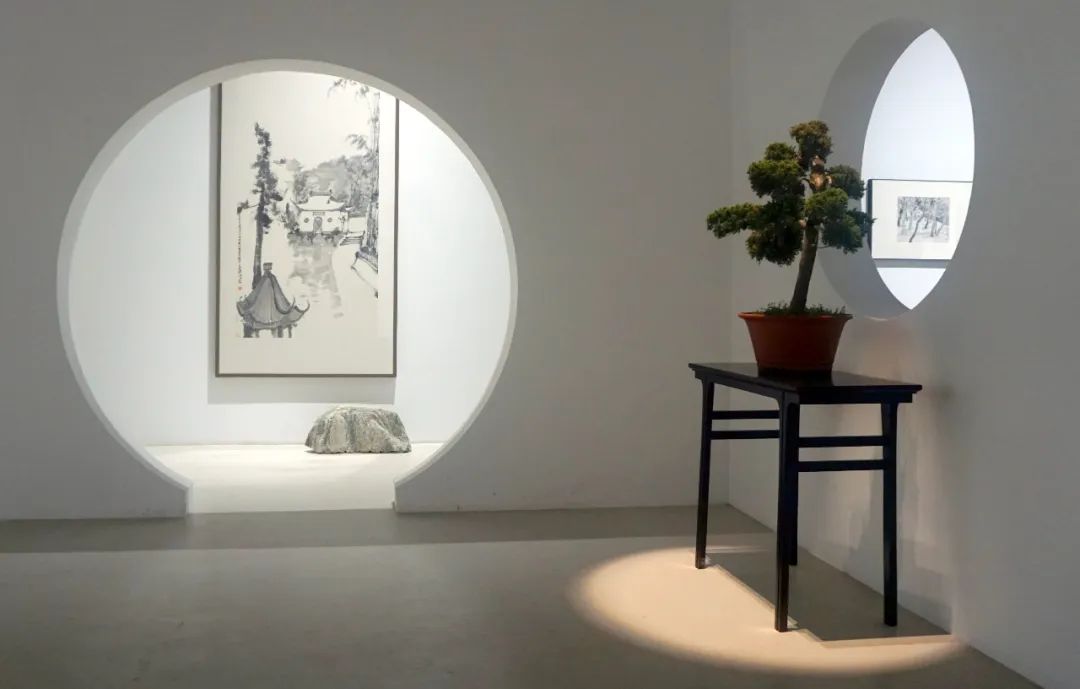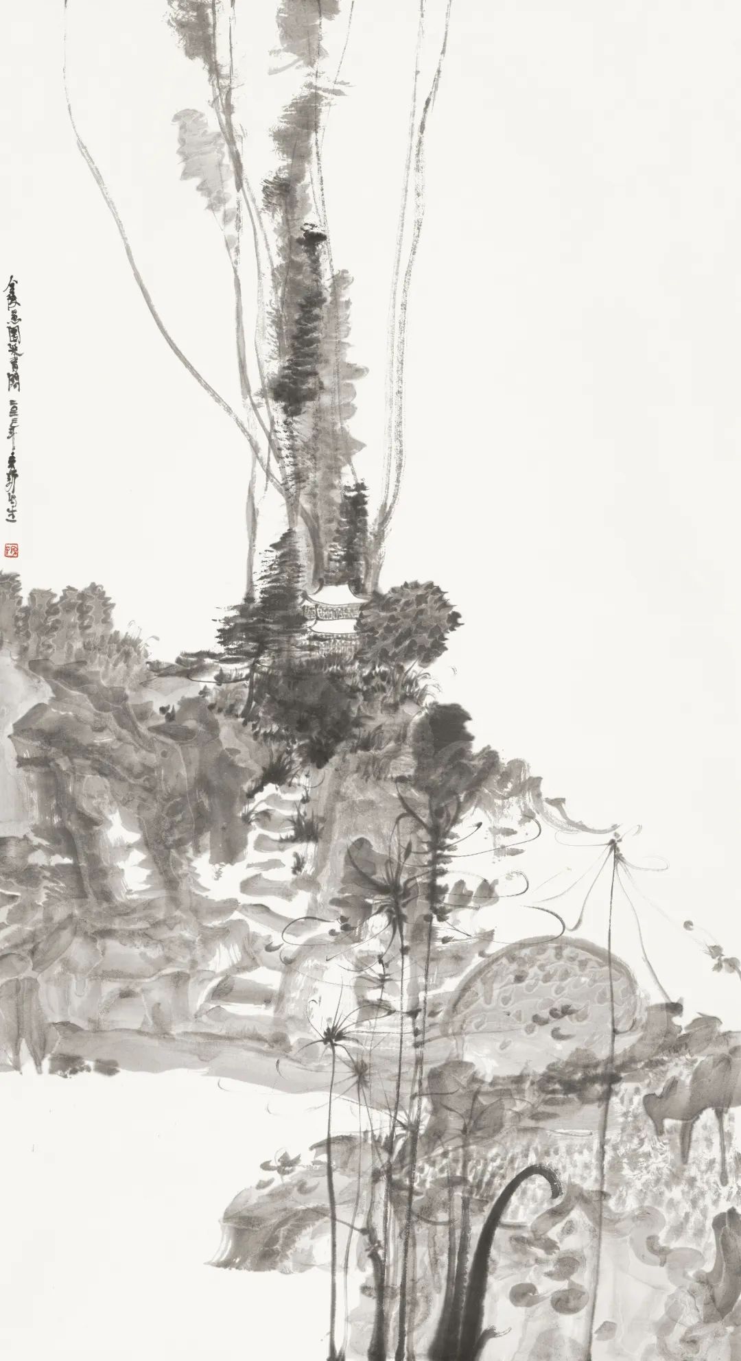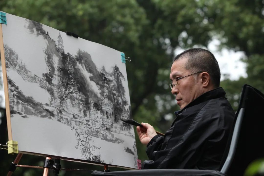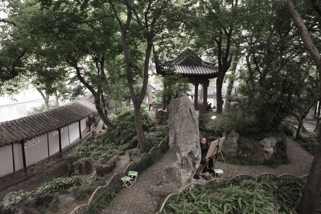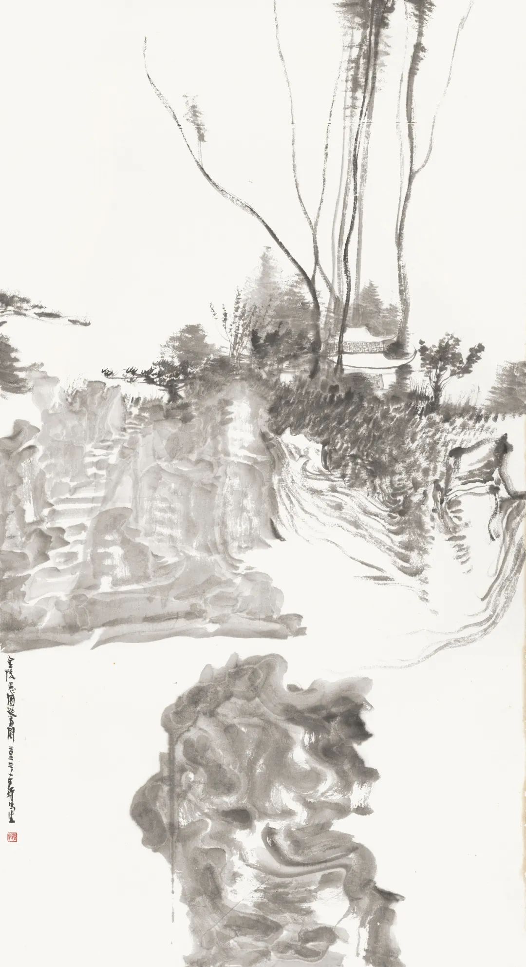 这些观点,都能体现在他近些年的山水写生中。比如《苏州园林写生》系列,他去苏州写生是2014年前后的事,之后又多次在苏州周边的地方画园林。此系列作品,是在笔与墨交织繁杂的结构里写意,笔与墨的勾勒、施染兼备,精心妙造,把本来三维立体空间的现场拉回到二维纸上,其画面上的通透感确却依然具备,浅淡的水墨质地呈现出质感,呈现绘画语言的一份新鲜,形与色上亦多有变化。如以墨分五色的感受力,来评判这样的画,感觉是减掉了枯与焦的变化,在湿、浓、淡三种美感中造出园林的艺术性,整体构图上也类似于照相机取景,具有现代感。在画面中,他凸显了笔墨精妙的把控力,生成出一种梦幻般新空间,这一点恐怕是与许多画园林的画家,在手法上拉开了距离。这样的距离不只是形质上的,而是画家在写生过程中,在强调园林题材的美观与意趣中对自我绘画语言的一种突破,达到了不同于现实园林和古代园林绘画图景中具体的状态,实现了绘画语言的纯粹感。他重视造型美感和园林意识,以独到的手法来完成每一幅作品对意境的营造,既拓展了个人艺术创作语言的边界,又深化了自我对自然山川的刻画,是一种别具一格的创建。