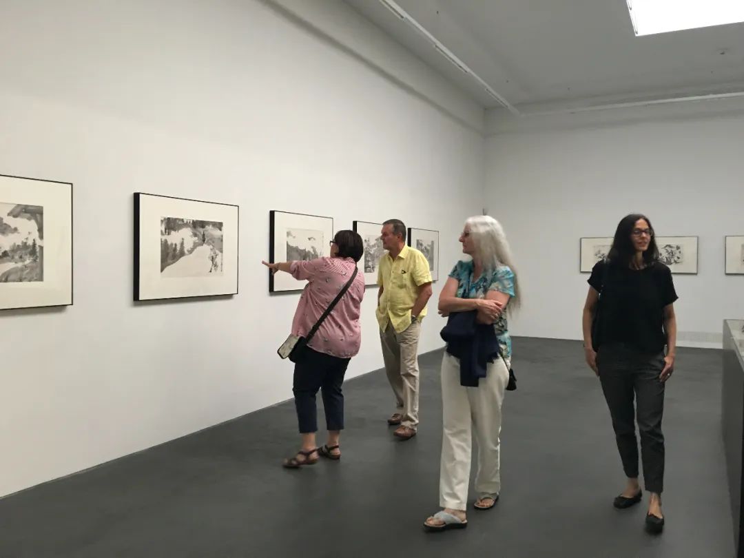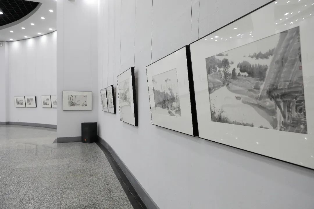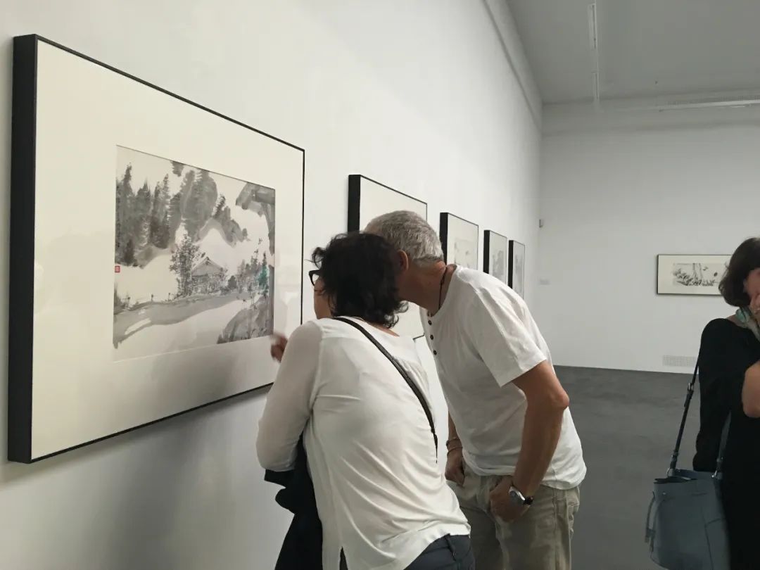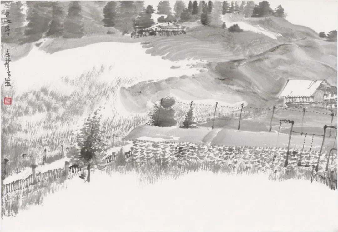 再看《瑞士写生》系列,或许是面对西洋景观,有一种陌生感,画面反而显得笔简墨洁,虚淡清雅,大量的留白和形式构成凸显了淡墨的价值。此处的画面多见曲线来完成,包括远处的山势,近处的块面草地,使画作层层韵味,比如《写生之一》《写生之十三》每一幅都妙不可言,由此想象到山水,也是可以由小观大,意味深远的。这也让我想到沈括在评王维画作《袁安卧雪图》时的一段话:“此乃得心应手,意到便成,故造理入神,迴得天意,此难可与俗人论也。”说明绘画之事,是要合于事理,技艺达到神妙境界,深得自然情趣才行。