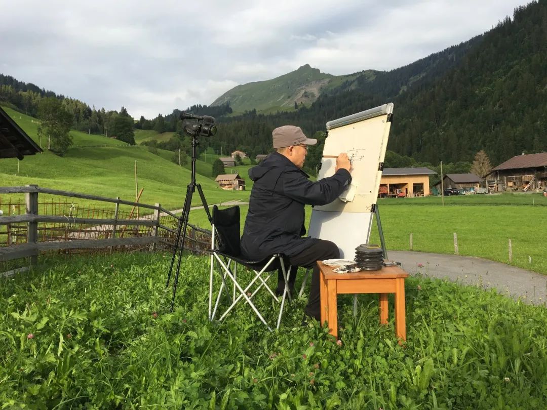 其实,感官里的真实,也是他一直在琢磨和体验的,自然就与任何画家的思路有所不同,也恰恰因为是走自己的路,在边画边思考中前行,如今,我们再回望他近十年来的山水写生过程时,突然发现一切好像都在变化,无论是园林还是大山大水,或是异域风光,他一着笔都是新鲜的图式,都有一种气格品位,这也是最具艺术魅力的地方。
