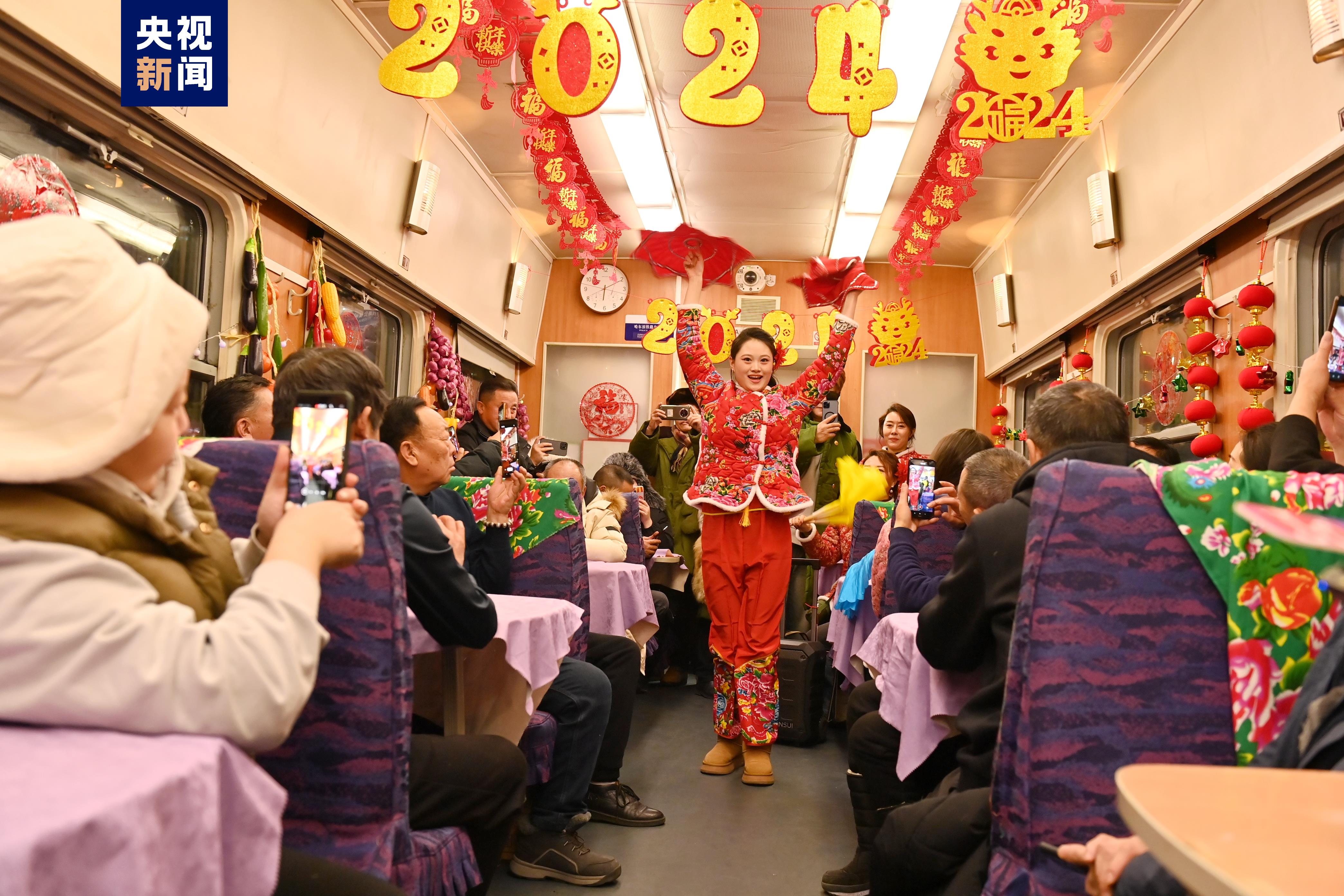 记者从中国铁路哈尔滨局集团有限公司获悉,首列东北民俗文化旅客列车着力呈现出有温度、有烟火气、可互动的主题形态,更加注重氛围营造与文化内涵提升,尝试突出对部分卧铺车厢、餐车进行特色定制,车厢内部装饰包含“最北人家”“喜迎丰收”“跨年狂欢”等主题场景,加入了沉浸式互动演绎和东北农家乐元素。