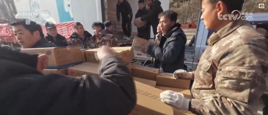 12月20日下午,外界救援的各类物资大量抵达,村民们领取频次也高了起来,村支书韩凯都是一路小跑协调各种事。
