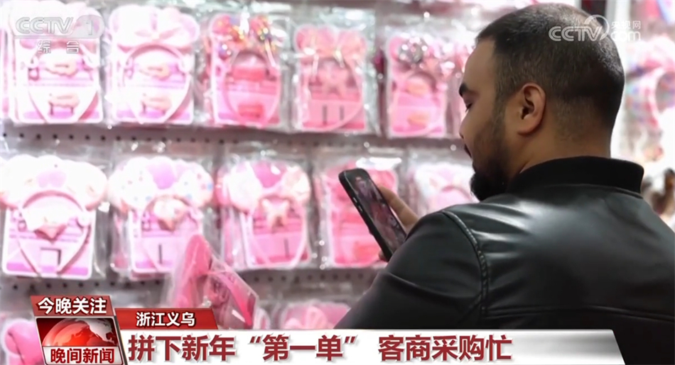 新年伊始,在浙江义乌小商品城,来自全球各地的客商马不停蹄地接触新客户、采购新产品,为新年第一单奔走。印度客商阿科塔在义乌做饰品外贸生意。一大早,他就忙着连线远在印度的客户。