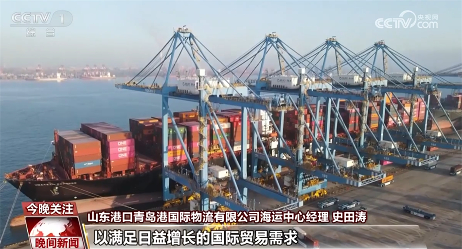 山东港口青岛港国际物流有限公司海运中心经理 史田涛:该航线加速了中美贸易之间的运输往来,将根据北美地区对中国制造的强劲需求,持续增加投入船舶密度,以满足日益增长的国际贸易运输需求。
