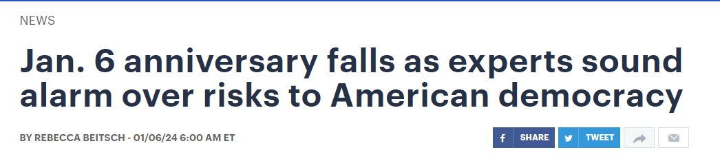 这项民调结果公布之时,正值“国会山骚乱”事件三周年之际,美国也迎来新的选举年。《国会山报》网站在6日的报道中再次提到,目前美国出现了一系列与民主状况有关的令人不安的迹象。